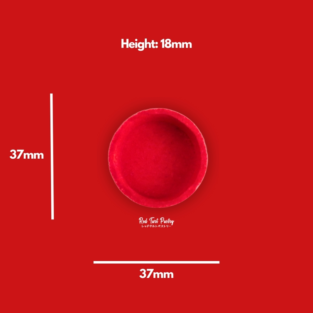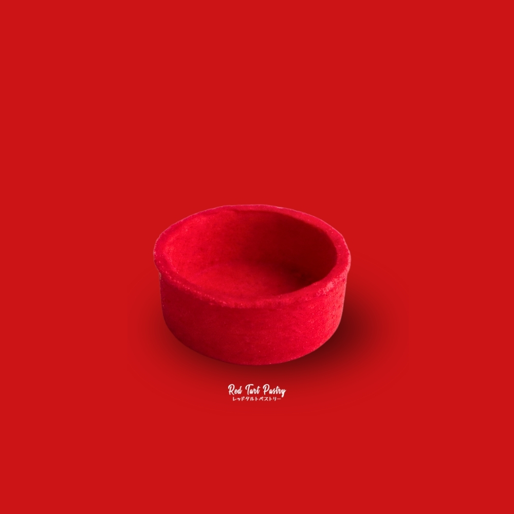 Straight-edged mini round tartlet made from sweet short-crust butter pastry, uses Raspberry flavoring and premium food-grade coloring (E129) for a bold red texture with Raspberry hints for sweet treats. Pre-baked and bake-stable. Coated internally with cocoa-butter for moisture protection and can be placed in room temperature, chiller or freezer (with plastic sheet).