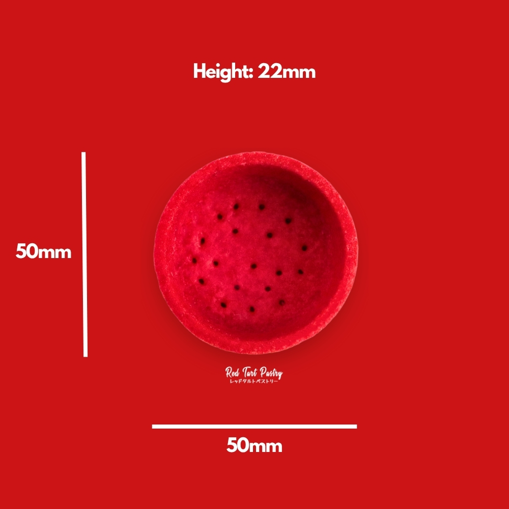 Straight-edged round tartlet made from sweet short-crust butter pastry, uses Raspberry flavoring and premium food-grade coloring (E129) for a bold red texture and Raspberry flavor for sweet treats. Pre-baked and bake-stable. Coated internally with cocoa-butter for moisture protection and can be placed in room temperature, chiller or freezer (with plastic sheet).