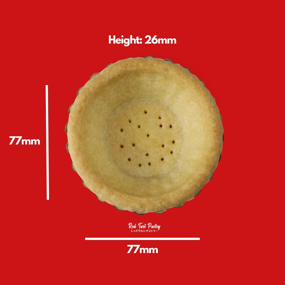 Fluted tartlet made from short-crust butter pastry, available in sweet, savory or plain flavors and golden-brown coloring. Pre-baked and bake-stable with additional aluminum mold. Coated internally with cocoa-butter for moisture protection and can be placed in room temperature, chiller or freezer (with plastic sheet).